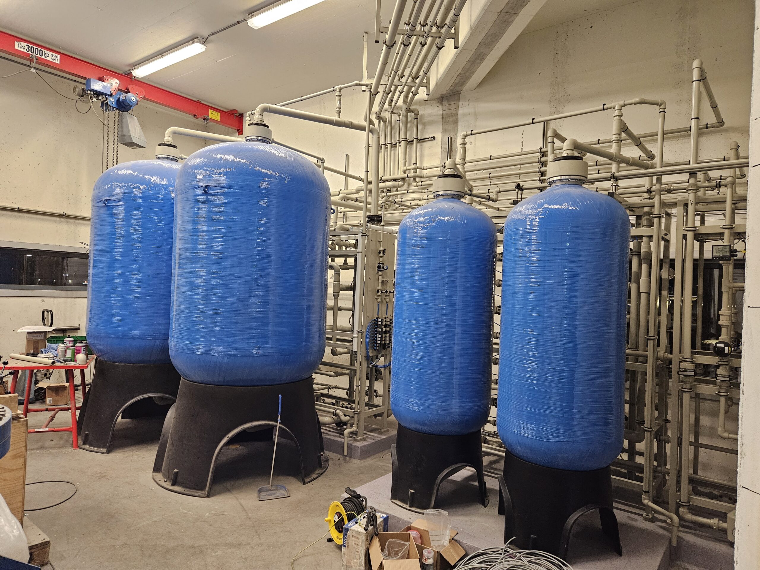 Dabei kommen unsere innovativen Technologien zum Einsatz. Unter anderem werden Ionenaustauscher, Aktivkohlefilter und ein Chemikalienlager mit Dosierung gebaut und installiert.