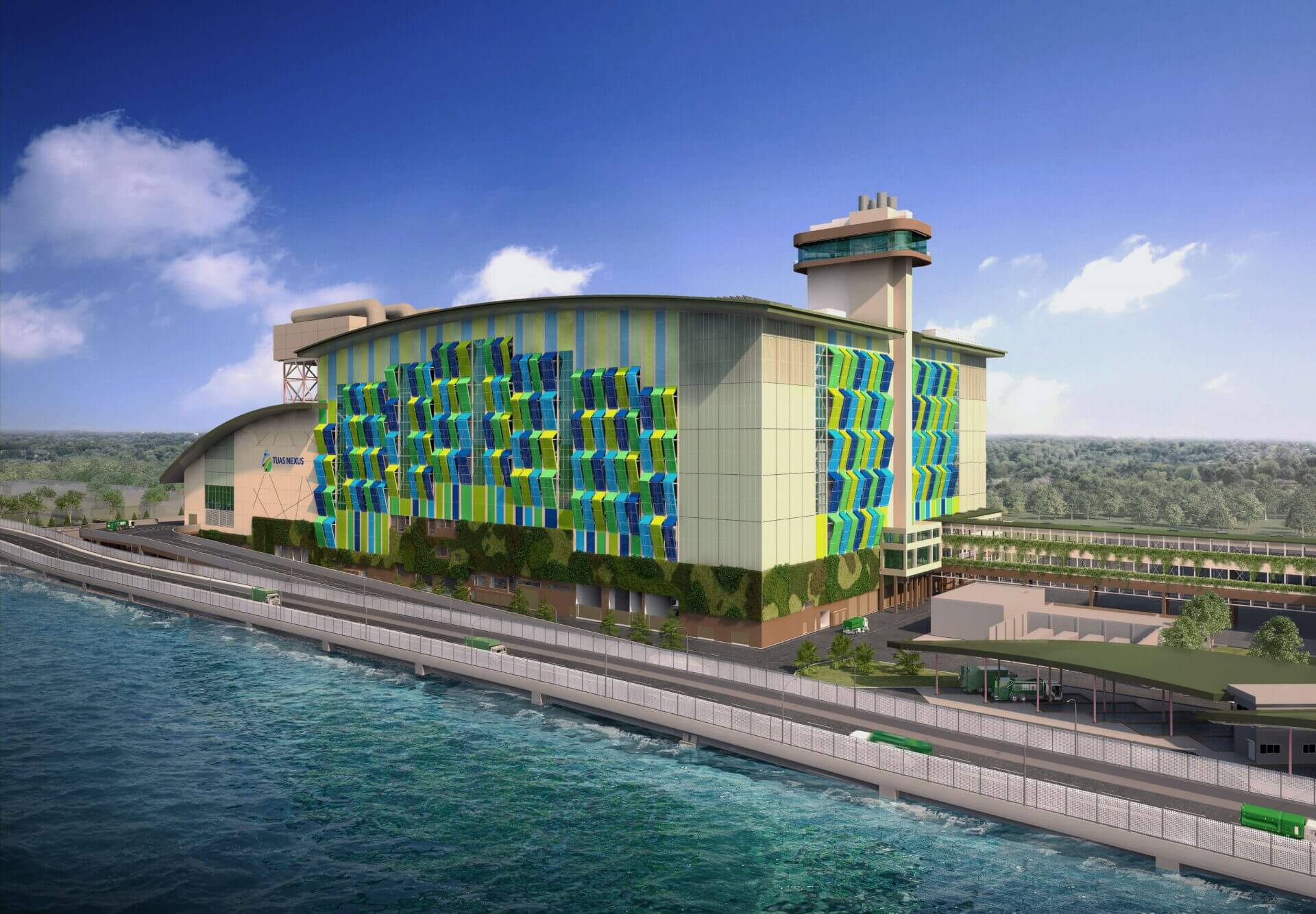 Die Tuas Nexus IWMF ist eine Vorzeige-Abfallentsorgungsanlage der Nationalen Umweltbehörde (NEA) in Singapur. Nach ihrer Fertigstellung wird die Tuas Nexus IWMF mit einer Verbrennungskapazität von bis zu 5’800 Tonnen Abfall pro Tag die bisher grösste Waste-To-Energy-Anlage ihrer Art in Singapur sein. Mit einer Verarbeitungskapazität von über 2 Millionen Tonnen Abfall pro Jahr könnte die Tuas Nexus IWMF Deponieraum für nicht verbrennbare Abfälle und Reststoffe auf der aktuellen Deponie freimachen. Die Anlage soll ab 2025 schrittweise in Betrieb genommen werden. Die Anlage wird neue Massstäbe für Technologie und Innovation in der Restmüllbehandlung setzen und gleichzeitig Energie aus Abfall zurückgewinnen.